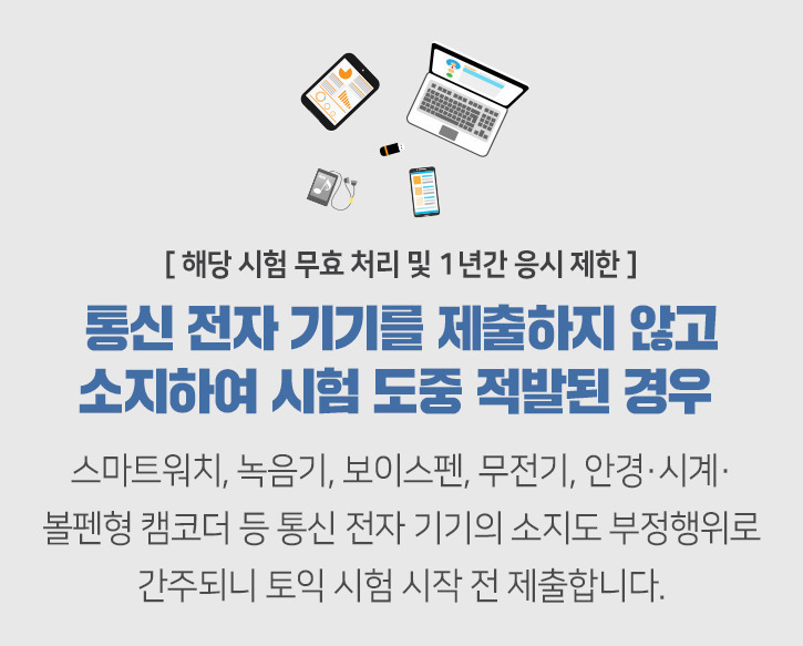 통신 전자 기기의 소지도 부정 행위로 간주되니 토익 시험 시작 전에 꼭 제출해 주세요!