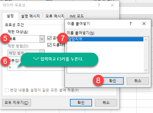 6. 원본 창에 “=”를 입력하고 F3키를 누릅니다.