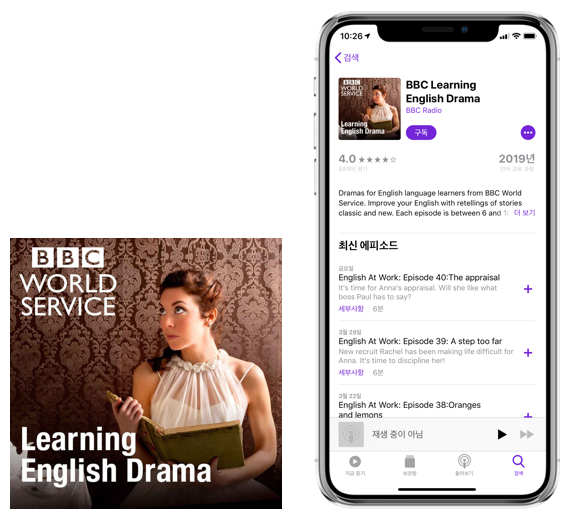 전 세계에서 수많은 사람들이 방송을 제작해서 올리기 때문에 팟캐스트에는 정말 다양한 종류의 방송 콘텐츠가 구비되어 있는데요. 물론 영어학습 콘텐츠도 풍성합니다. 그뿐만 아니라 무료로 받아서 들을 수 있죠. 영어 교육을 목적으로 방송을 제작하는 사람도 있고, 방송사에서 만든 라디오 드라마까지 제공하기 때문에 내 영어 듣기 수준에 맞춰 난이도를 정해 받아서 들을 수도 있습니다.