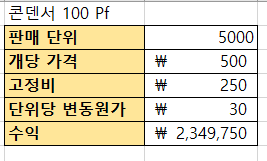 (주)일렉트릭 마트는 전기전자 부품들을 수입해서 온라인 쇼핑몰에서 판매하는 도매업체입니다. 판매하는 품목 중 “콘덴서 100 Pf”라는 상품이 있습니다. 시나리오를 만들어서 이 상품의 변동원가가 최악(인상)일 때와 최상(인하)일 때 수익에 어떤 변화가 있는지 알아보겠습니다.