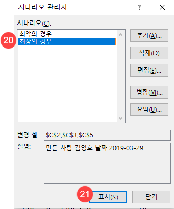 18. 시나리오 관리자 대화 상자에서 “최악의 경우”를 선택합니다.
