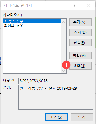 1. 시나리오 관리자 대화 상자에서 [요약]을 클릭합니다.