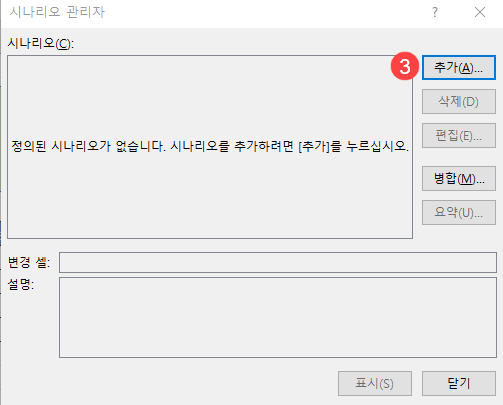 3. 시나리오 관리자 대화 상자에서 [추가]를 클릭합니다.