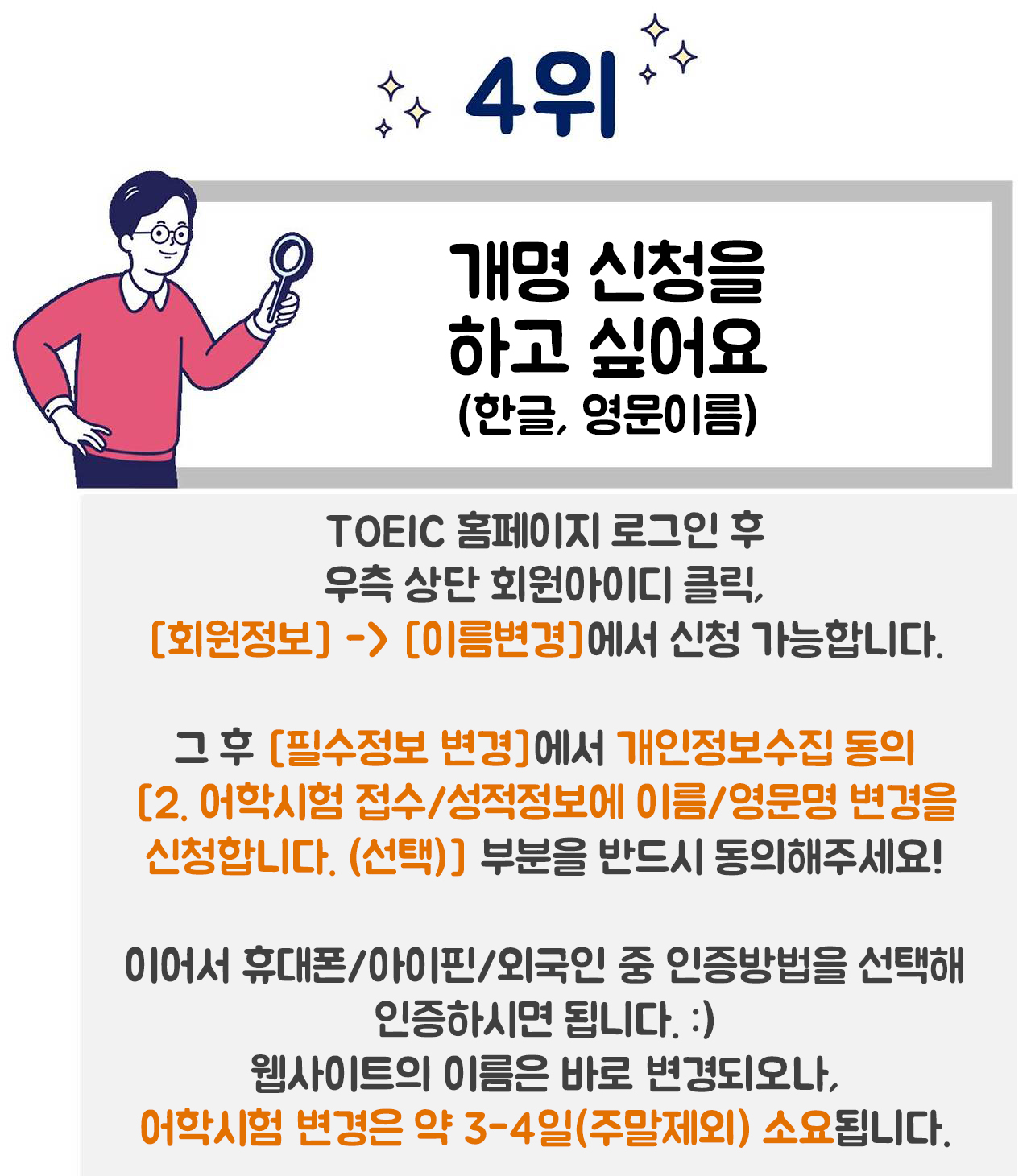 Q4. 토익 개명 신청을 하고 싶어요!