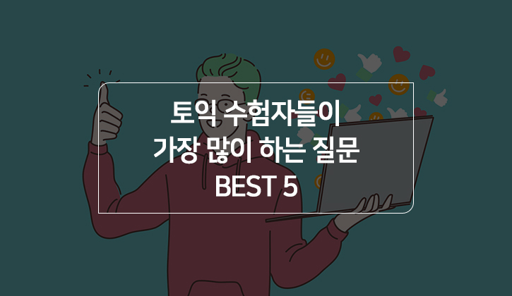 그렇다면! TOEIC을 준비하는 사람들이 가장 궁금해하는 건 무엇일까요? <토익스토리가>가 YBM 한국TOEIC위원회 C/S팀의 도움을 받아 'TOEIC 수험자들이 많이 하는 질문 BEST 5'와 그에 대한 답변을 정리해 보았습니다. 그럼 지금부터 확인해볼까요~?