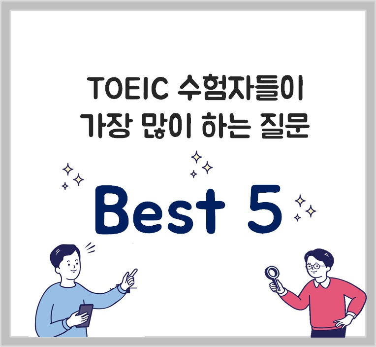 그렇다면! TOEIC을 준비하는 사람들이 가장 궁금해하는 건 무엇일까요? <토익스토리가>가 YBM 한국TOEIC위원회 C/S팀의 도움을 받아 'TOEIC 수험자들이 많이 하는 질문 BEST 5'와 그에 대한 답변을 정리해 보았습니다. 그럼 지금부터 확인해볼까요~?