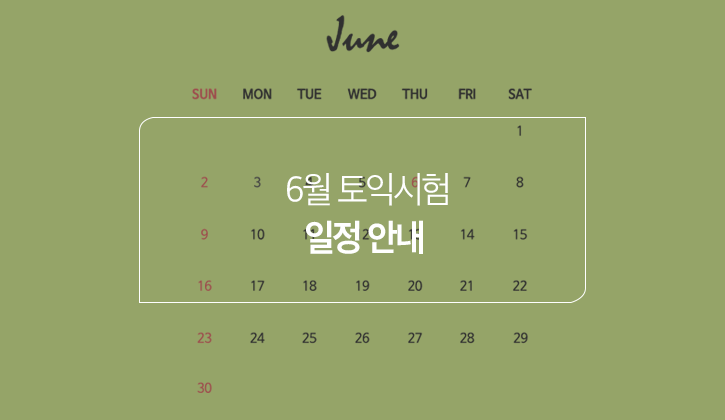 6월에는 토익 정기시험이 두 번 열립니다. 5월에는 없었던 토요일 시험도 있는데요. 지금부터 6월 토익 정기시험 일정과 접수 마감일, 성적 발표일을 확인해 보겠습니다.