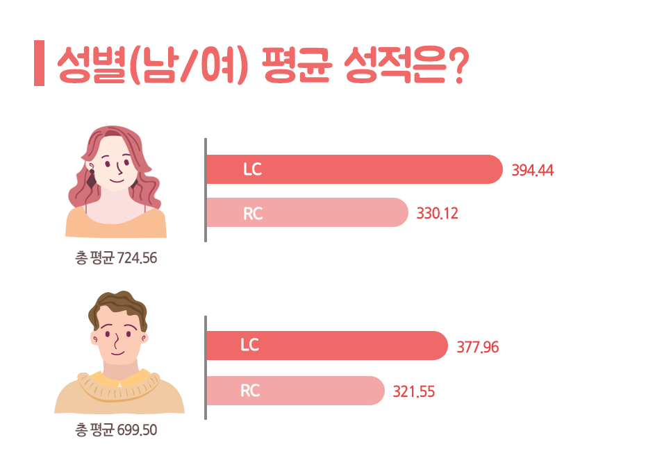 성별 토익 평균 성적