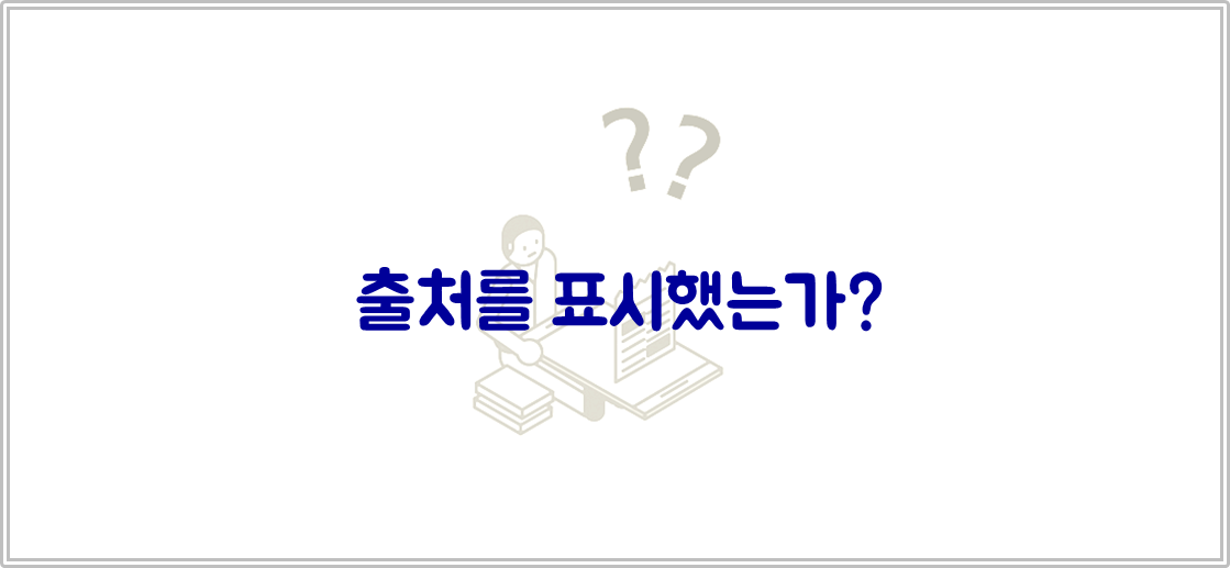 출처는 기본입니다. 각주에서 출처를 표기하지 않으면 공정한 관행에 따른 인용이라고 볼 수 없는데요. 리포트는 물론이고 저작물의 유형을 막론하고 출처 표기는 필수라 할 수 있습니다. 출처 표기는 저작권법 위배 여부를 논하기에 앞서 콘텐츠 창작자로서 반드시 지켜야 하는 기본 매너라는 사실! 꼭 기억하세요.
