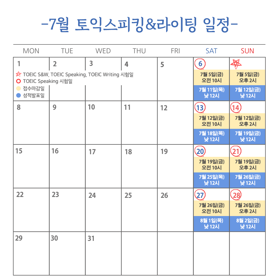 7월 토익스피킹과 토익라이팅 일정을 한 번에!