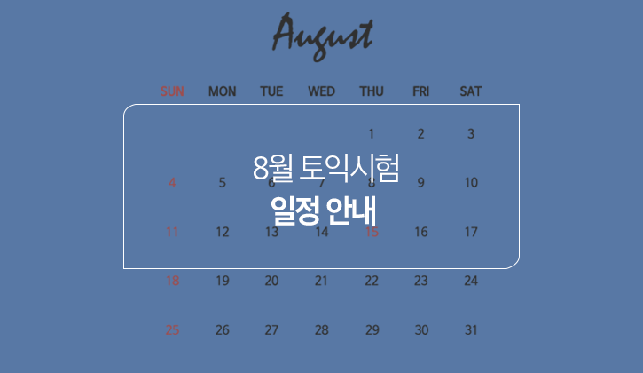 8월에는 총 두 차례 토익이 시행됩니다. 7월과 동일하게 8월에도 일요일 시험이 있는데요. 지금부터 8월 토익 시험 일정과 접수 마감일, 성적 발표일을 한 번에 확인해볼게요!