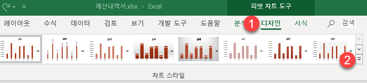 피벗 챠트에 시각적으로 다양한 스타일 효과를 줄 수 있습니다.