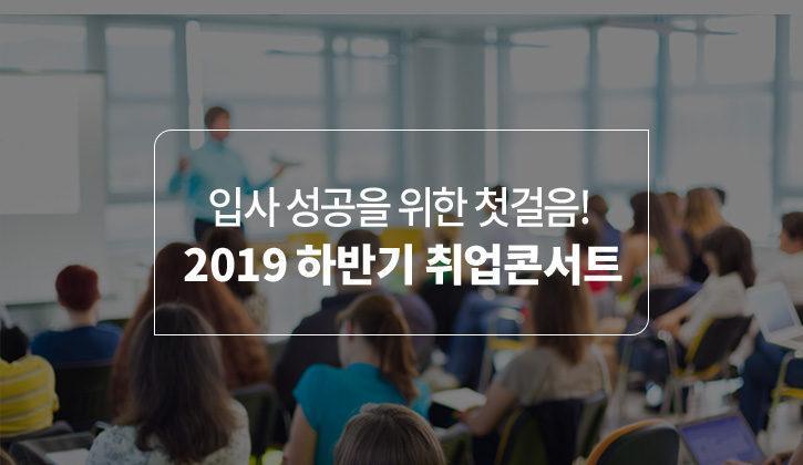 2019 하반기 취업콘서트는 8월 23일과 8월 27일에 총 두 차례 진행되는데요. 8월 23일(금)에는 부산 동아대 부민캠퍼스 김관음행홀에서 8월 27일에는 연세대 신촌캠퍼스 공학원 대강당에서 13시 30분부터 시작합니다.