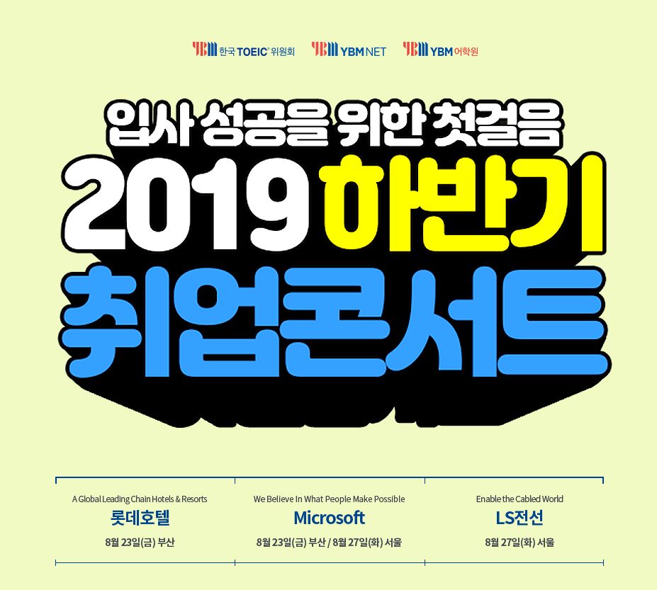 전국에 계신 취준생들을 위해 토익스토리가 희소식을 가져왔습니다. 바로바로 YBM 한국TOEIC위원회에서 주관하는 2019 하반기 취업콘서트인데요. 2019년 하반기 입사를 준비하는 취준생, 또는 토익/토익스피킹이나 외국계 기업에 관심이 있는 분이라면 주목해 주세요!