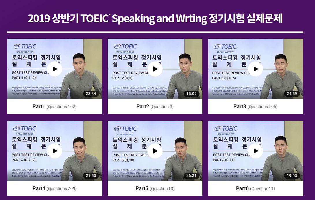 실제로 시험에 출제된 문제인 만큼 토익스피킹, 토익라이팅 수험자들 분들의 학습에 큰 도움이 될 것 같은데요. 지금 토익스피킹 홈페이에 방문하시면 실제 문제는 물론, 전문 강사진의 해설 영상을 볼 수 있습니다.