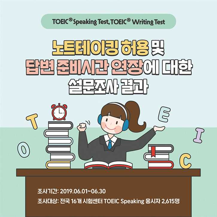 지금까지 TOEIC Speaking and Writing Tests 규정 및 정책 변경에 관한 설문조사 결과를 살펴봤습니다. 상당수의 응시자들이 변경된 시험 정책에 만족하는 것으로 나타났는데요! 개선된 수험환경을 200% 활용하셔서 모두 좋은 결과 얻으시길 <토익스토리>가 응원합니다~! :D