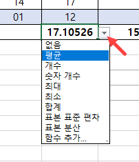 요약행의 목록 단추를 클릭하여 다른 요약 함수로 변경할 수 있습니다.