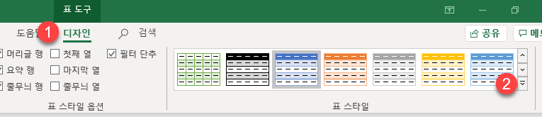 1. [표 도구] 아래 [디자인]을 클릭합니다.