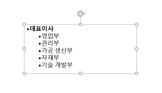 슬라이드에 입력된 조직부서의 이름 전체를 마우스로 선택합니다. 또는 텍스트 상자를 클릭합니다.