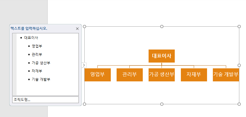 4. [영업부] 아래에 새 도형이 추가되면 ‘국내 영업부’를 입력합니다.