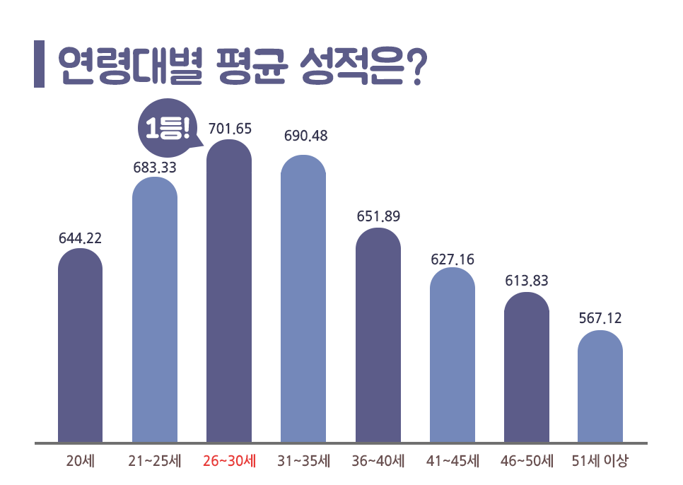 연령대별 토익 평균 성적