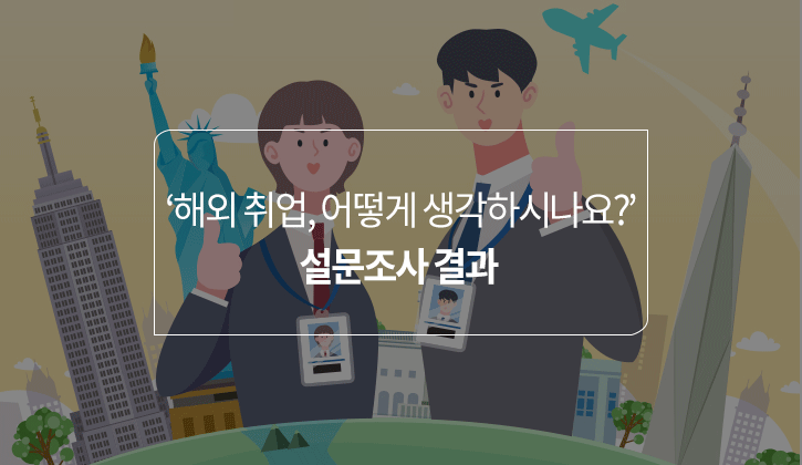 ‘해외 취업, 어떻게 생각하시나요?’라는 주제로 7월 18일부터 8월 20일까지 약 30일 동안 설문조사 이벤트가 진행되었습니다. 특히 이번 설문조사의 경우 응답자 수가 6천 명을 넘길 정도로 엄청난 호응을 얻었는데요. 여러분들의 많은 관심과 참여에 다시 한번 감사드리며! 그럼 지금부터 설문조사 결과를 공개합니다~!