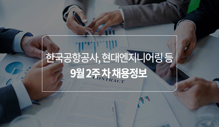 9월 2주 차 채용정보를 알려드립니다. 한국공항공사, 현대엔지니어링, 현대제철에서 인턴 및 신입직원을 채용하고 지원자의 어학 점수를 받습니다. 모집 마감일과 토익, 토익스피킹 성적 기준 등 자세한 내용을 확인해 보겠습니다.