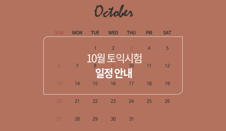 늦더위와 가을장마로 습하고 추적추적한 날씨가 이어지고 있습니다. 날씨의 영향으로 몸도 축축 늘어질 뿐 아니라 내일이면 민족 대명절인 추석 연휴가 시작되어 마음도 풀어지는데요. 이럴 때일수록 10월 토익 시험 일정을 살펴보며 영어 공부 자극을 받는 것도 마음을 다잡을 수 있는 방법 중 하나입니다.