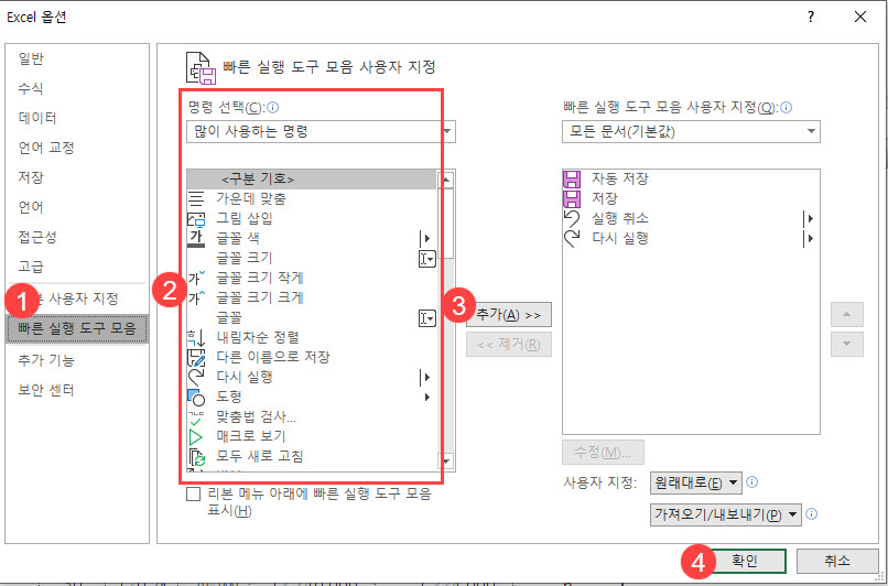 1.4.3 빠른 실행 도구모음 사용자 지정하기