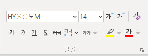 2. [홈] > [글꼴] > 굵게, 밑줄, 기울임꼴 등을 선택합니다.