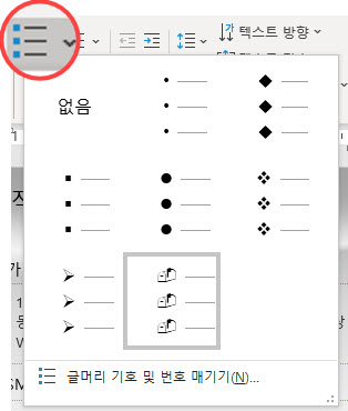 3. 원하는 글머리 기호 및 번호 매기기 종류를 선택합니다.