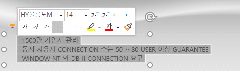1. 8번 슬라이드의 내용 중 “고객 DB연결” 텍스트를 마우스로 드래그하여 선택합니다.