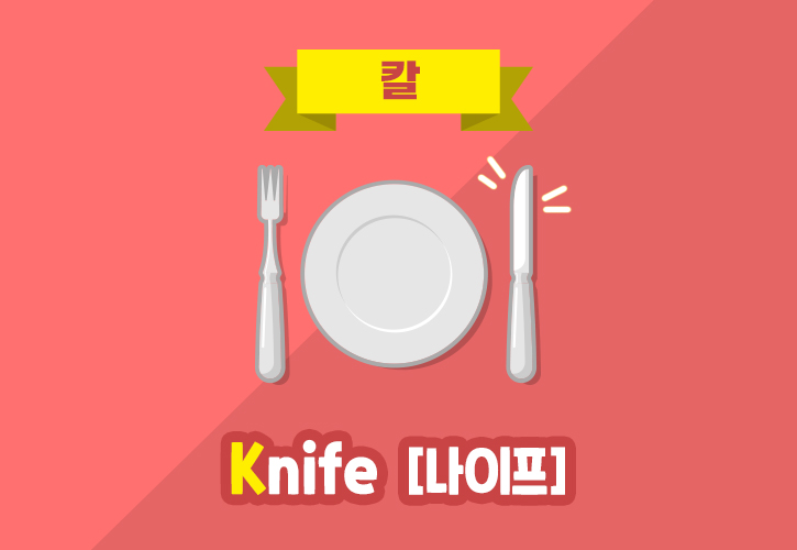 n앞에 있는 k는 발음하지 않는 묵음 규칙이 있는데요. 'Knife[나이프]'도 k묵음 규칙이 적용된 단어 중 하나입니다. 외래어 '나이프'라고 생활 속에서도 많이 사용하기 때문에 우리에게 익숙한 단어인데요. 만약 k가 발음되었다면 [크나이프]라고 읽었겠죠~?