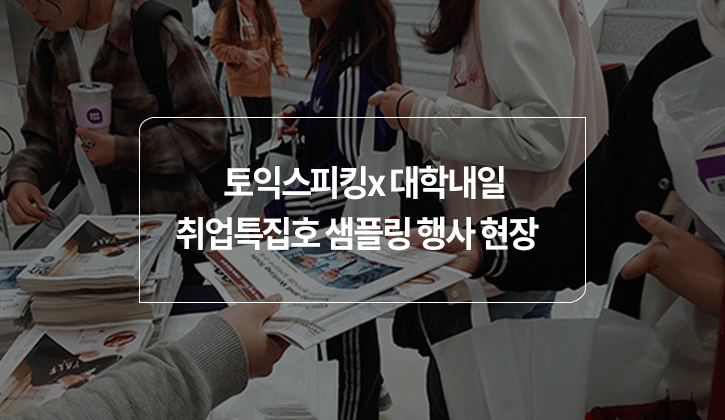 대학내일에서 10월 7일부터 15일까지 서울 소재 대상 10개교 캠퍼스에서 '취업특집호 샘플링 행사'를 진행하고 있는데요. YBM한국토익위원회도 참여하고 있다는 사실, 알고 계셨나요~? <토익스토리>가 숙명여대에서 진행된 첫 번째 샘플링 행사 현장과 남은 일정도 정리해드리겠습니다. 함께 보시죠!