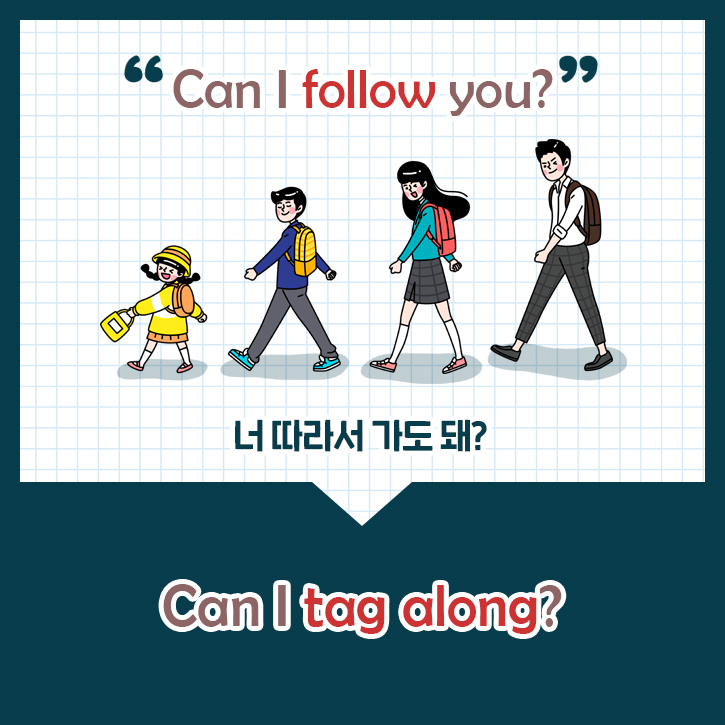 '너 따라 가도 돼?’라고 영어로 말하고 싶을 때 ‘Can I follow you?’라고 하시나요? ‘follow’를 ‘따라가다’라는 뜻으로 기계적으로 외웠기 때문에 일대일 대응해서 쓰는 경우가 많은데요. 하지만! 이 표현을 쓰면 듣는 외국인 친구는 섬뜩하게 느낄 수도 있다고 해요. 'follow'가 '미행'의 뜻을 갖고 있기 때문인데요. '미행해도 돼?', '뒤를 좀 밟아도 될까?'라고 원어민에게는 들렸으니 긍정적으로 반응할 사람은 없겠죠?