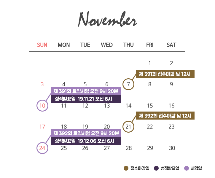 성적 발표 일시는 제391회 11월 21일(목) 오전 6시, 제392회 12월 6일(금) 오전 6시이니 참고해 주세요.