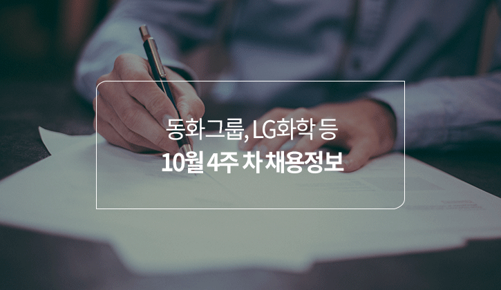 10월 4주 차 채용정보를 알려드립니다. 동화그룹, LG화학, 세아상역에서 인턴 및 신입직원을 채용하고 지원자의 어학 점수를 받습니다. 모집 마감일과 토익, 토익스피킹 성적 기준 등 자세한 내용을 확인해 보겠습니다.