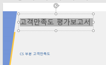 1. 제목 슬라이드의 제목 “고객만족도 평가 보고서”를 선택합니다.