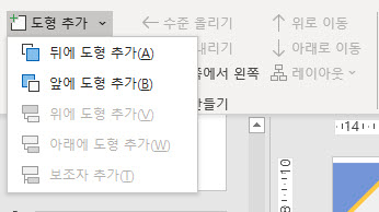선택한 도형의 뒤에 도형을 추가하려면 [뒤에 도형 추가]를 클릭합니다.