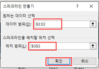 3. [데이터 범위]에 마우스로 B3:E3 셀 범위를 선택하여 입력합니다.