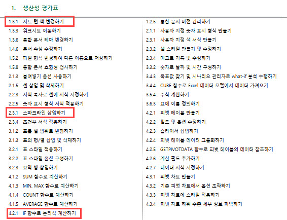 생산성 평가표를 작성하는데 필요한 Skill