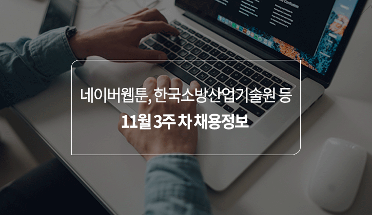 11월 3주 차 채용정보를 알려드립니다. 네이버웹툰, 한국소방산업기술원, TBWA KOREA에서 인턴 및 신입직원을 채용하고 지원자의 어학 점수를 받습니다. 모집 마감일과 토익, 토익스피킹 성적 기준 등 자세한 내용을 확인해 보겠습니다.