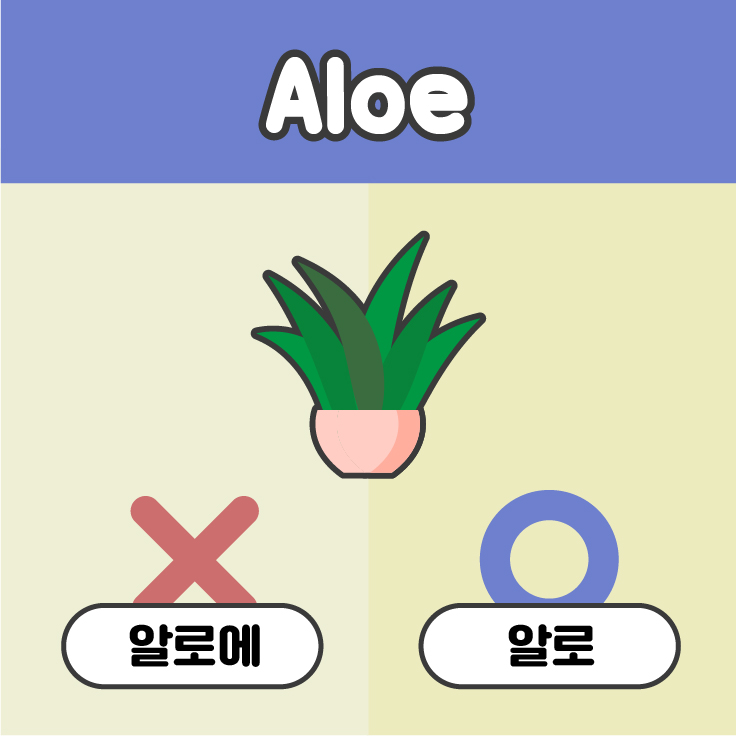 수분 진정 효과가 있다고 알려진 ‘알로에’. 피부 트러블이 있을 때 자연스럽게 찾게 되는 화장품 성분인데요. 그 외에도 잘라서 먹거나 음료로 먹는 등 미용과 식용으로 두루 이용되고 있습니다. 우리에게 친숙한 '알로에'의 영어 발음은 외래어와 살짝 다른데요. ‘e’ 발음이 나지 않아 [알로]라고 읽습니다.