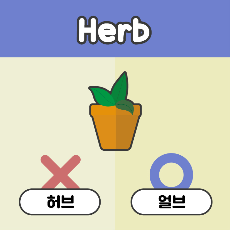 'Herb' 영어 발음은 우리가 평상시에 사용하는 [허브]와 다른데요. <토익스토리>에서 '영어 묵음'에 대해 소개해드린 적 있었죠? '영어 묵음' 편에서도 살펴봤듯이 'h'가 단어의 맨 앞에 있을 경우, 묵음 되는 규칙이 적용돼 'Herb'도 [얼브]라고 읽는답니다.