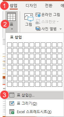 1. [삽입] > [표] > [표] > [표 삽입]을 선택합니다.