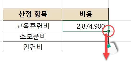 4. 오른쪽 산정 항목 표의 I3셀을 마우스로 클릭합니다.