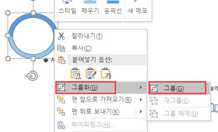 (도형 2개를 서로 구분하기 위해서 다른 색상으로 채우기 하는 것이 좋습니다.)