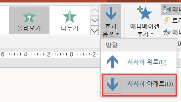 2. [애니메이션] > [효과 옵션] > [서서히 아래로]를 선택합니다.
