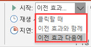 애니메이션의 시작시간을 3가지 옵션으로 지정할 수 있습니다.