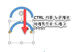 4. 모양 조정이 끝난 후, 막힌 원호 도형 하나를 더 복사하기 위해 CTRL키를 누른 채로 드래그합니다.
